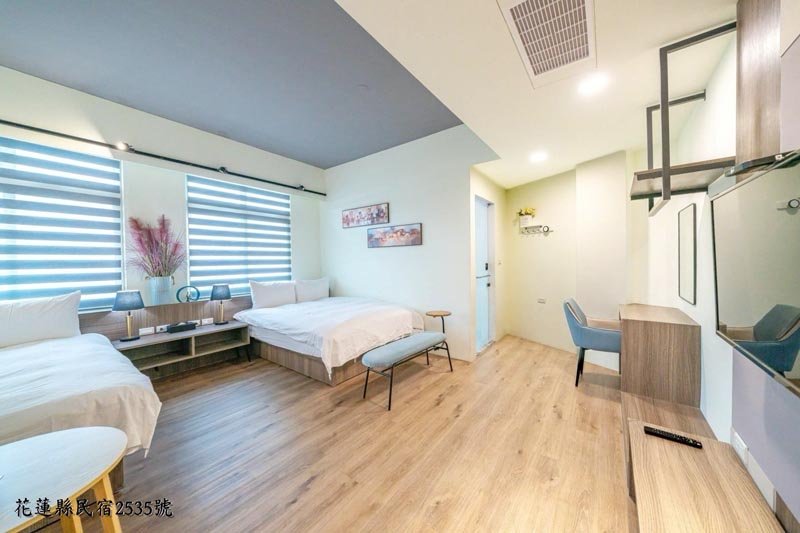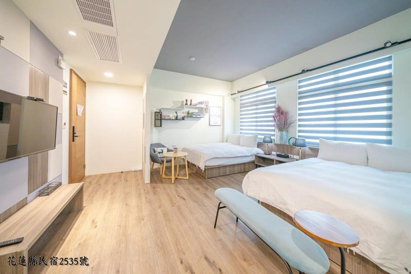 | 標準雙人床×2 | 乾濕分離大衛浴 | 雙座採光窗 |